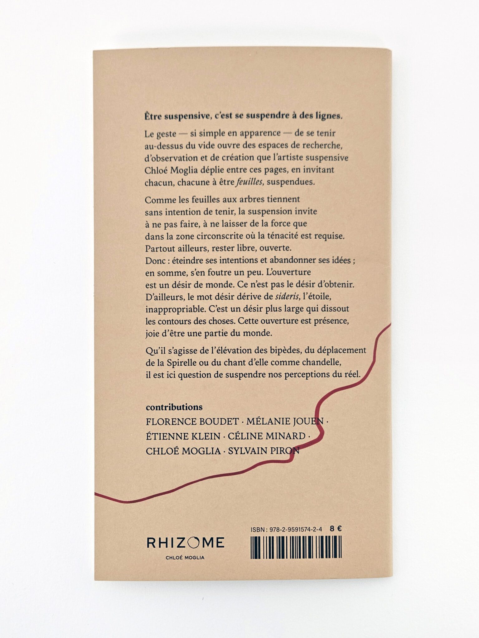 Initiée par l’artiste suspensive Chloé Moglia, publiée par la compagnie Rhizome, les feuilles est une revue qui accueille de manière saisonnière les écrits d’auteurices et chercheureuses autour de la pratique et de la notion de suspension.